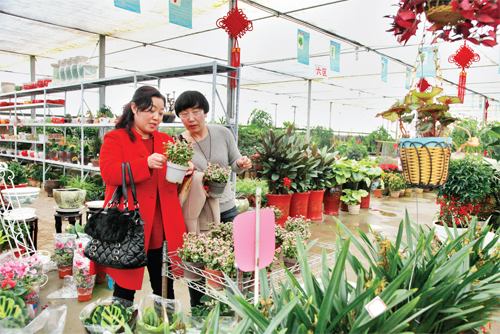 2月16日,市民在忻州城區(qū)七一南路的“陳紅花卉”批發(fā)市場選購花卉?!岸拘袆印遍_展以來,忻府區(qū)發(fā)揮區(qū)位優(yōu)勢,大力扶持發(fā)展特色觀賞農(nóng)業(yè),為農(nóng)民增收挖掘新的經(jīng)濟增長點。春節(jié)期間,一批像“陳紅花卉”大棚一樣的花卉種植戶獲得了較高的經(jīng)濟收入。(侯睿 攝)