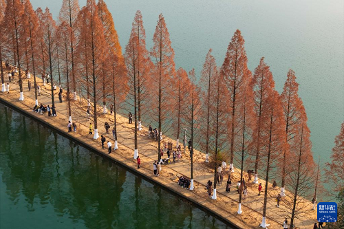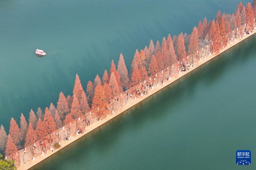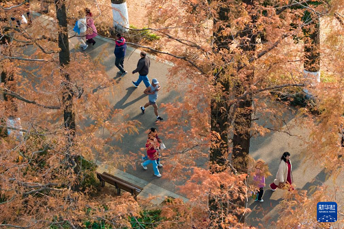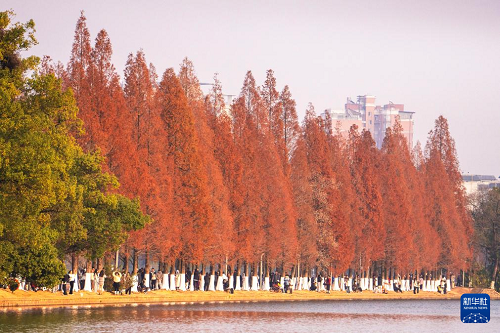 連日來,湖南省長沙市烈士公園的水杉樹葉轉(zhuǎn)紅,在冬日暖陽的映照下,園內(nèi)景色如畫,吸引不少市民前來游玩打卡。