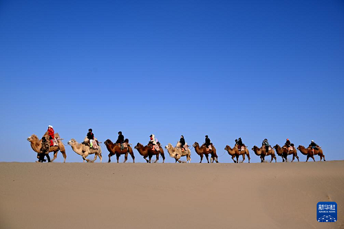 1月2日,游客在甘肅省敦煌市鳴沙山月牙泉景區(qū)游覽。(新華社發(fā) 張曉亮 攝)