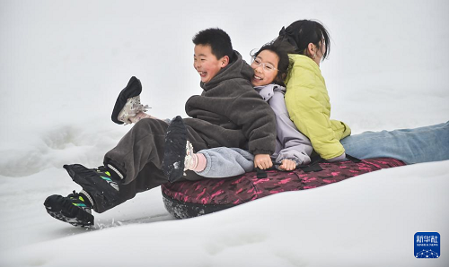 1月3日,市民在河南省洛陽市伊濱區(qū)一滑雪場游玩。(新華社發(fā) 黃政偉 攝)