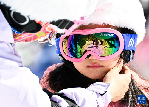 1月11日,家長在江蘇省句容市寶華山滑雪場給小朋友整理裝備。(新華社記者 季春鵬 攝)
