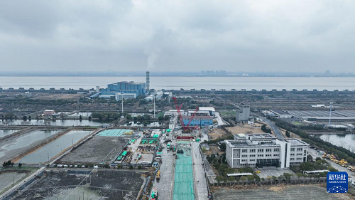 1月20日拍攝的錢塘江高鐵盾構(gòu)隧道施工現(xiàn)場(無人機照片)。(新華社發(fā) 王欣 攝)