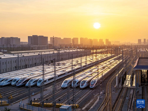 春運大幕即將拉開,中國鐵路西安局集團有限公司西安動車段內,高鐵動車組靜候待發(fā)。