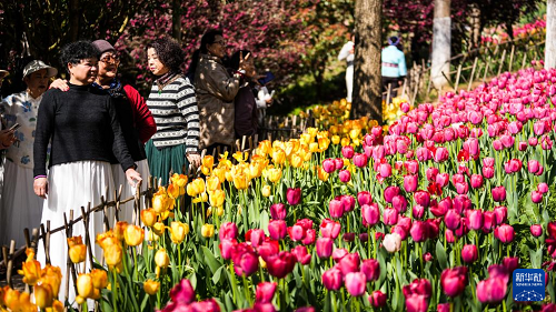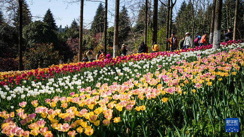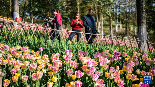 近日,貴州省黔南布依族苗族自治州龍里縣龍架山國家森林公園內(nèi)的數(shù)萬株郁金香競(jìng)相綻放,吸引各地游客前來游玩賞景。