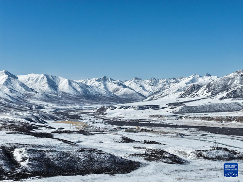 ?3月15日,青海省果洛藏族自治州瑪沁縣雪后迎來晴好天氣,群山被白雪覆蓋,與藍(lán)天相映,構(gòu)成一幅壯美的高原春日圖景(無人機(jī)照片)。(新華社記者 張龍 攝)