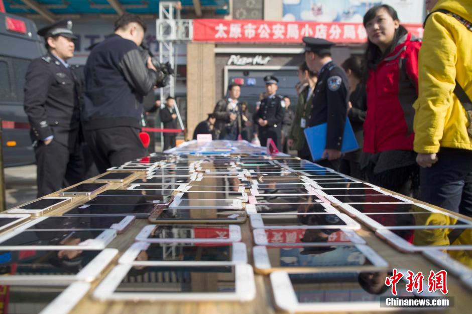 3月2日,山西太原警方發(fā)還民眾被盜手機(jī)。近日,太原市公安局偵破一個(gè)手機(jī)扒竊犯罪團(tuán)伙,破獲案件200余起,追繳手機(jī)180余部。張?jiān)?攝