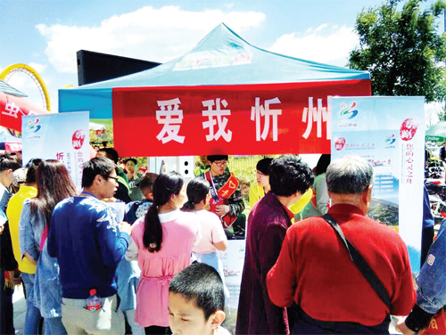 5 月15 日,忻州青年志愿者服務(wù)協(xié)會、愛心公益聯(lián)盟、忻州師院志工部的愛心人士,人員一起來到云中河景區(qū)晉忻夢幻樂園門前,開展“愛我忻州、為家鄉(xiāng)投票”活動,為我市“申旅”助力?;顒蝇F(xiàn)場吸引了眾多游客,大家紛紛拿出手機,為美麗的家鄉(xiāng)投票。圖為投票活動現(xiàn)場。(張志遠 攝)