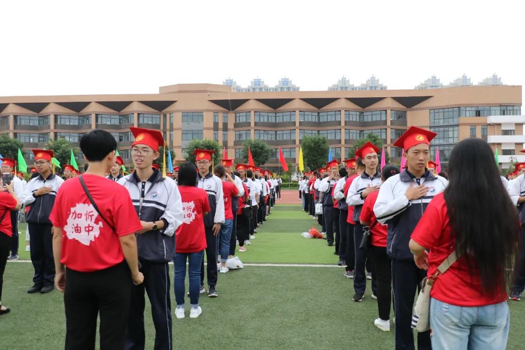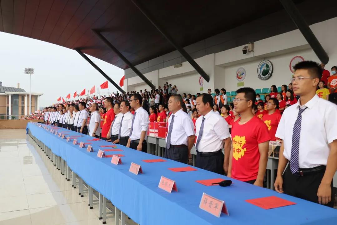 “少年智則國智,少年富則國富;少年強(qiáng)則國強(qiáng),少年獨(dú)立則國獨(dú)立……”激昂奮進(jìn)的聲音在北校區(qū)的操場上空回響,在全體高三學(xué)生《少年中國說》激情澎湃的誦讀聲中,本次大會正式開始。莊嚴(yán)的升旗儀式后,學(xué)生代表、教師代表和家長代表依次獻(xiàn)詞:好友同窗與共的奮斗時光,老師日復(fù)一日的悉心陪伴,父母無私無盡的付出關(guān)愛,在一句句溫情感人的獻(xiàn)詞中歷歷浮現(xiàn),激蕩心靈。