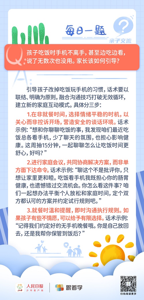 每日一題丨孩子吃飯玩手機(jī)屢教不改,該如何引導(dǎo)?