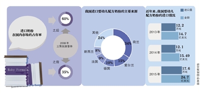今年2月,中國海關(guān)發(fā)布的數(shù)據(jù)顯示,2015年我國進口嬰幼兒配方奶粉達到17.6萬噸,較2014年的12.1萬噸增加5.5萬噸,同比增長45%;進口嬰幼兒配方奶粉的價值達到24.7億美元,同比增長59.5%。