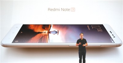 今年3月3日,在印度首都新德里,小米科技推出專(zhuān)門(mén)針對(duì)印度市場(chǎng)的紅米Note 3手機(jī)。圖為小米科技全球副總裁雨果·巴拉在發(fā)布會(huì)上介紹紅米Note 3手機(jī)。