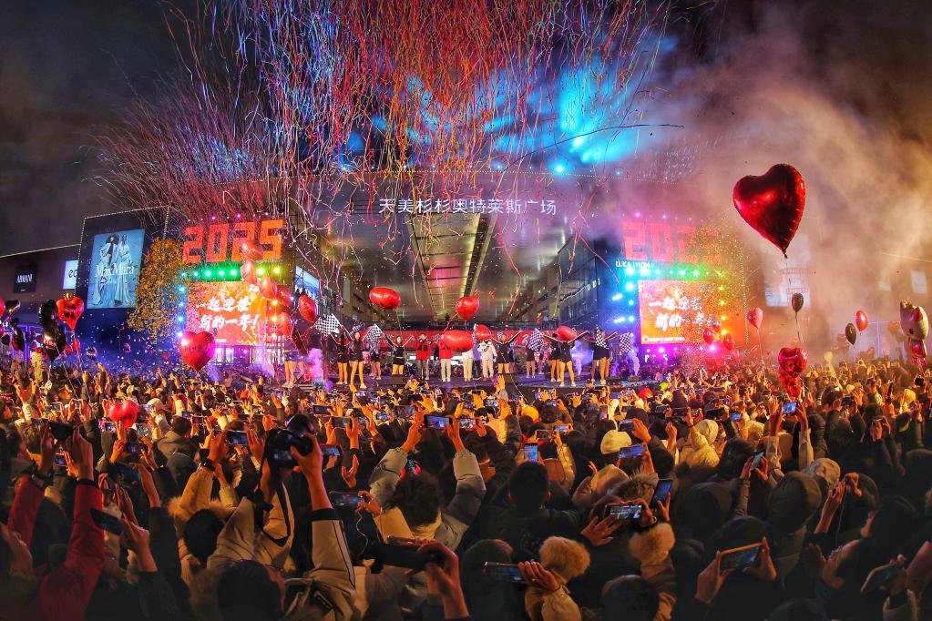 “五、四、三、二、一!”晉中天美杉杉奧特萊斯購物廣場(chǎng)的88臺(tái)高空禮炮噴射彩帶,將跨年夜的氛圍引至高潮。