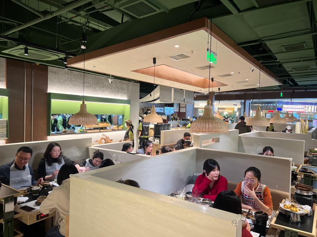臨近跨年零點(diǎn),山緩緩餐廳山西首店還有一些顧客在排隊(duì)候餐,期待嘗鮮“山野風(fēng)”火鍋。山緩緩品牌北區(qū)運(yùn)營總監(jiān)王志剛說:“跨年當(dāng)日我們店的營收額突破8萬元?!辈惋嬙谛嘛L(fēng)格和新體驗(yàn)上迭代升級(jí),區(qū)域首店也更能激發(fā)消費(fèi)者熱情。