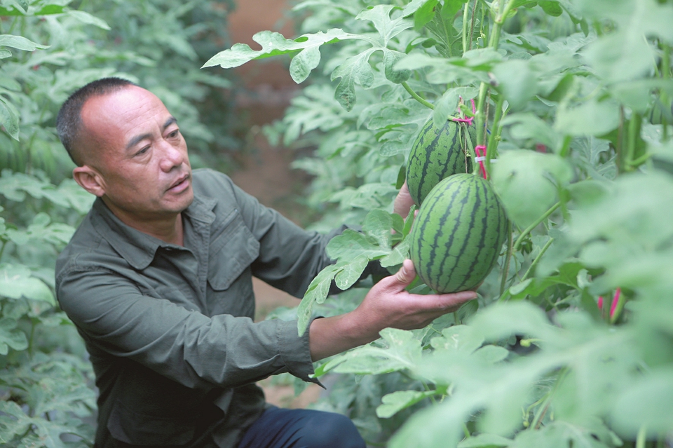 從西紅柿、香瓜到西瓜,合作社基地在周邊積累了穩(wěn)定客源,形成“采摘經(jīng)濟”與零售批發(fā)雙渠道銷售模式。定襄縣農(nóng)業(yè)技術(shù)服務(wù)中心賈明山介紹,近年來,定襄縣依托晝夜溫差大、光照充足的氣候優(yōu)勢,通過土地流轉(zhuǎn)整合資源,推廣“合作社+基地+農(nóng)戶”經(jīng)營模式。為了引導(dǎo)農(nóng)民發(fā)展設(shè)施農(nóng)業(yè),解決村中富余勞動力,縣農(nóng)業(yè)農(nóng)村局去年投入60余萬元,對全縣30余座老舊大棚進行了改造。僅邢俊成的合作社就吸納了周邊20余戶村民就業(yè),從整地、育苗、授粉到采摘,每個環(huán)節(jié)都成了當(dāng)?shù)剞r(nóng)戶的“增收點”。