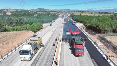 最近,國道108線改建工程(忻州段)激戰(zhàn)正酣,平地機、裝載機、瀝青攤鋪機等設備馬力全開,路面水穩(wěn)層攤鋪、滑膜機工藝澆筑中央護欄等工序正在緊鑼密鼓地進行。工人們忙碌穿梭,安全員逐項排查隱患,技術人員同步檢測施工質量,現(xiàn)場一片繁忙有序。掀起大干快干的新高潮,已進場施工作業(yè)人員300余人,主要機械設備進場100臺套,道路項目水穩(wěn)層鋪設完成總量的80%,下面層瀝青鋪設完成總量的60%、上面層瀝青鋪設完成總量的25%,中央分隔帶護欄累計完成59.41%。涌動的數(shù)字可以折射火熱的工作場面。國道108線忻州段改建工程項目是“十四五”期間全省規(guī)模最大、里程最長、投資最多的國省干線新改建工程。今年以來,山西路橋集團忻州國道項目建設管理有限公司提前吹響決戰(zhàn)的沖鋒號,圍繞項目建設爭分奪秒搶進度。項目部正采取“白+黑”“五+二”的工作模式,組織工人對路面、路基、交安、機電、綠化采取交叉作業(yè)等方式施工,在確保質量安全的前提下,各項工作正按照預期目標穩(wěn)步推進。