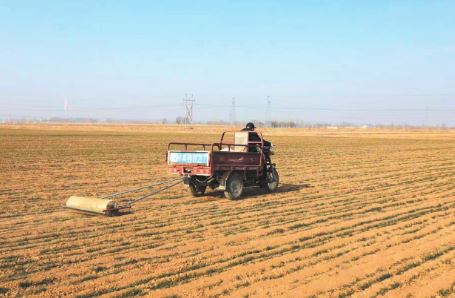 冬管正當(dāng)時,壓苗保豐收。冬日的南胡村田埂上,幾臺磙子正在來回作業(yè),將麥田壓實。管護工人張清賢正熟練地操作著磙子,他笑著介紹:“這是在滾地壓地,作用就是保墑,防止水分流失。咱們這也壓了兩三天了,基本上壓好了,明年肯定又是大豐收。”