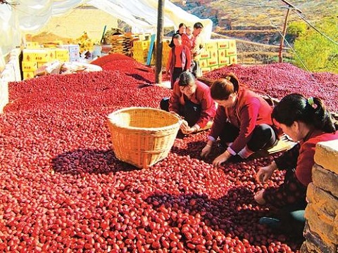 近年來(lái),臨縣縣委、縣政府大力實(shí)施紅棗品牌發(fā)展戰(zhàn)略,不斷提升加工轉(zhuǎn)化能力,將棗樹(shù)確定為“縣樹(shù)”,設(shè)立紅棗產(chǎn)業(yè)局,創(chuàng)立“臨縣紅棗”公共品牌,出臺(tái)了支持紅棗產(chǎn)業(yè)發(fā)展的15項(xiàng)優(yōu)惠政策,初步形成了“生產(chǎn)有基地、加工有龍頭、銷售有網(wǎng)絡(luò)、政策有傾斜”的紅棗產(chǎn)業(yè)發(fā)展格局。通過(guò)書(shū)記、縣長(zhǎng)為紅棗代言,舉辦紅棗旅游文化節(jié)、紅棗電商論壇,參加國(guó)內(nèi)各種博覽會(huì)、交易會(huì)等推介活動(dòng),擴(kuò)大了臨縣紅棗品牌影響力。目前,臨縣紅棗年產(chǎn)值突破6億元,占全縣農(nóng)業(yè)總產(chǎn)值的42%。棗區(qū)農(nóng)民紅棗收入占人均純收入的70%以上,紅棗產(chǎn)業(yè)已經(jīng)成為全縣農(nóng)民增收的一項(xiàng)主導(dǎo)產(chǎn)業(yè)。