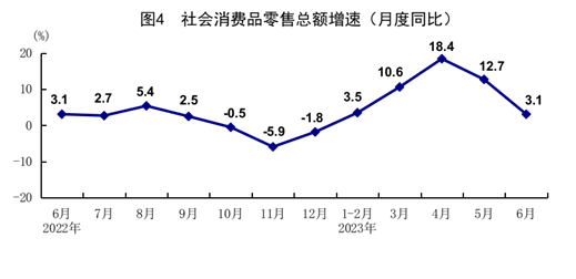 上半年,社會消費品零售總額227588億元,同比增長8.2%,比一季度加快2.4個百分點。按經(jīng)營單位所在地分,城鎮(zhèn)消費品零售額197532億元,同比增長8.1%;鄉(xiāng)村消費品零售額30056億元,增長8.4%。按消費類型分,商品零售203259億元,增長6.8%;餐飲收入24329億元,增長21.4%?;旧铑惿唐蜂N售穩(wěn)定增長,限額以上單位服裝鞋帽針紡織品類、糧油食品類商品零售額分別增長12.8%、4.8%。升級類商品銷售較快增長,限額以上單位金銀珠寶類、體育娛樂用品類、化妝品類商品零售額分別增長17.5%、10.5%、8.6%。全國網(wǎng)上零售額71621億元,同比增長13.1%。其中,實物商品網(wǎng)上零售額60623億元,增長10.8%,占社會消費品零售總額的比重為26.6%。6月份,社會消費品零售總額同比增長3.1%,環(huán)比增長0.23%。