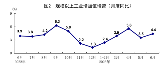 上半年,全國規(guī)模以上工業(yè)增加值同比增長3.8%,比一季度加快0.8個百分點。分三大門類看,采礦業(yè)增加值同比增長1.7%,制造業(yè)增長4.2%,電力、熱力、燃氣及水生產(chǎn)和供應(yīng)業(yè)增長4.1%。裝備制造業(yè)增加值增長6.5%,比全部規(guī)模以上工業(yè)快2.7個百分點。分經(jīng)濟類型看,國有控股企業(yè)增加值同比增長4.4%;股份制企業(yè)增長4.4%,外商及港澳臺商投資企業(yè)增長0.8%;私營企業(yè)增長1.9%。分產(chǎn)品看,太陽能電池、新能源汽車、工業(yè)控制計算機及系統(tǒng)產(chǎn)量分別增長54.5%、35.0%、34.1%。6月份,規(guī)模以上工業(yè)增加值同比增長4.4%,環(huán)比增長0.68%。6月份,制造業(yè)采購經(jīng)理指數(shù)為49.0%,企業(yè)生產(chǎn)經(jīng)營活動預(yù)期指數(shù)為53.4%。
