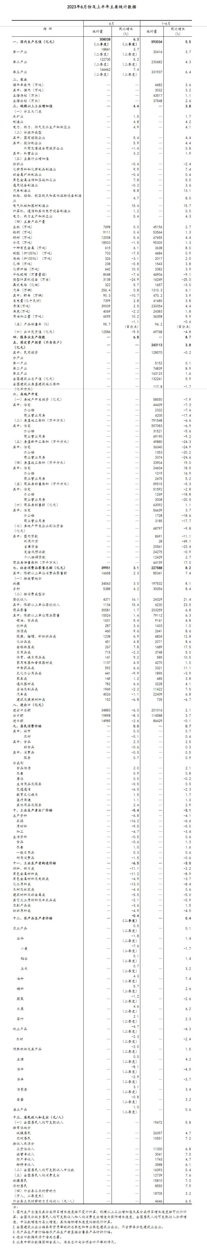 (1)國內(nèi)生產(chǎn)總值及其分類項目增長速度按不變價計算,規(guī)模以上工業(yè)增加值及其分類項目增長速度按可比價計算,均為實際增長速度;其他指標除特殊說明外,按現(xiàn)價計算,為名義增長速度。