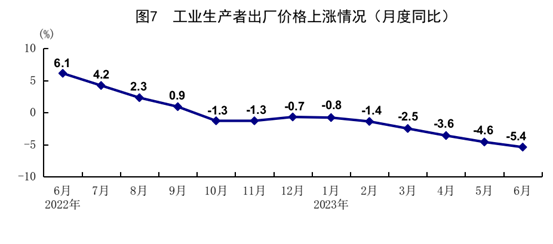 上半年,全國工業(yè)生產(chǎn)者出廠價格同比下降3.1%。其中,6月份同比下降5.4%,環(huán)比下降0.8%。上半年,工業(yè)生產(chǎn)者購進價格同比下降3.0%。其中,6月份同比下降6.5%,環(huán)比下降1.1%。