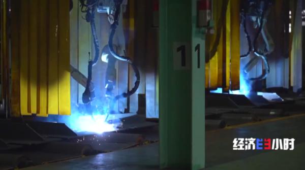 南通中遠(yuǎn)海運川崎公司機器人焊接生產(chǎn)線組長 丁瑞東:我們有三條機器人焊接生產(chǎn)線,相比傳統(tǒng)人工效率的話,有效提高60%左右,生產(chǎn)周期縮短50%。