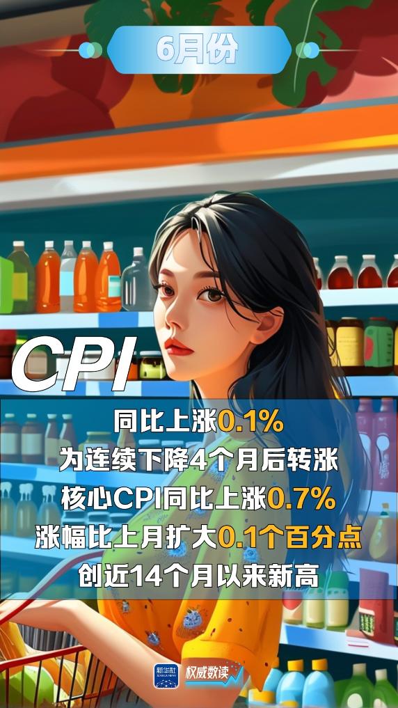 國家統(tǒng)計局9日發(fā)布數(shù)據(jù)顯示,6月份,擴內(nèi)需、促消費政策持續(xù)顯效,居民消費價格指數(shù)同比由上月下降轉(zhuǎn)為上漲0.1%;環(huán)比下降0.1%,降幅比上月收窄0.1個百分點;扣除食品和能源價格的核心CPI同比繼續(xù)回升,上漲0.7%。工業(yè)生產(chǎn)者出廠價格指數(shù)環(huán)比下降0.4%,降幅與上月相同。