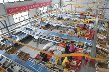 11月14日,原平市同川鎮(zhèn)劉河底村同川梨果倉儲配送中心自動化選果車間內,工人們正在篩選、包裝產品。近年來,該市發(fā)揮“一村一品”地理優(yōu)勢,深耕梨果產業(yè)鏈,建設與現(xiàn)代農業(yè)產業(yè)發(fā)展相適應的農產品冷鏈物流體系,助力當?shù)剞r產品對外銷售。