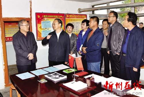 圖為市委副書記、 市長鄭連生在代縣神澗村與縣鄉(xiāng)村干部探討農村貧困人口脫貧大計。 石俊文 攝