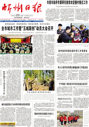 4月22日,忻州市召開會(huì)議,動(dòng)員全市開展“五城聯(lián)創(chuàng)”工作。提出了要以建設(shè)宜居忻州、造福人民群眾為目的、以“創(chuàng)衛(wèi)”為基礎(chǔ)、以“創(chuàng)園”為重點(diǎn)的創(chuàng)建國(guó)家衛(wèi)生城市、省級(jí)園林城市、國(guó)家環(huán)保模范城市、省級(jí)智慧城市、省級(jí)文明城市。同時(shí)宣布成立了“五城聯(lián)創(chuàng)”總指揮部,全面推進(jìn)了“五城聯(lián)創(chuàng)”工作。9月2日和12月9日,我市相繼召開忻州城區(qū)創(chuàng)建國(guó)家衛(wèi)生城市大會(huì)和再動(dòng)員大會(huì),對(duì)創(chuàng)衛(wèi)工作再部署、任務(wù)再明確,進(jìn)一步動(dòng)員市、區(qū)各級(jí)各部門提高認(rèn)識(shí),明確責(zé)任,強(qiáng)化措施,狠抓落實(shí),確保城區(qū)順利創(chuàng)建國(guó)家衛(wèi)生城市。目前中心城區(qū)創(chuàng)建國(guó)家衛(wèi)生城市通過(guò)專家暗訪,14個(gè)縣(市、區(qū))實(shí)現(xiàn)創(chuàng)衛(wèi)全覆蓋,全省唯一。中心城區(qū)和原平、五臺(tái)、寧武、岢嵐創(chuàng)建省級(jí)園林城市通過(guò)省考核驗(yàn)收,數(shù)量全省第一。加強(qiáng)大氣污染防治,全年二級(jí)以上天氣同比增加9天,是全省完成年度目標(biāo)任務(wù)的3個(gè)市之一。(2016年4月23日《忻州日?qǐng)?bào)》)