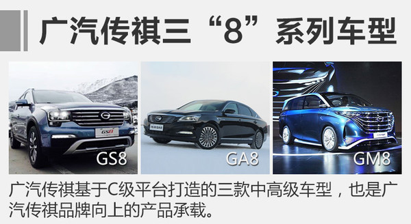 為達到“品牌向上”的效果,廣汽傳祺還將加大中高級車型的布局,包括旗下三“8”系列車型。其中轎車車型GA8已上市,另一款“8”系列的SUV車型GS8也已正式上市,未來還有一款MPV車型GM8。這些車型的加入,將使得廣汽傳祺在銷量和品質上大幅提升。(圖/文 網通社 姜微)