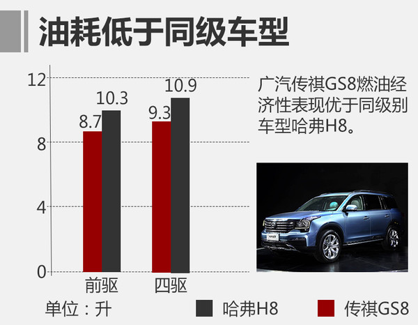 新車定位于中大型SUV,上市后將與哈弗H8等車型處于同一級別。油耗方面,通過與哈弗H8對比后發(fā)現,新車兩驅與四驅車型在燃油經濟性方面均具備一定優(yōu)勢。