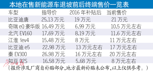 春節(jié)剛過,原計劃買輛純電動車上下班用的番禺市民劉先生,在去4S店轉了一圈后,開始猶豫了。原本看中的一款車,最終購車預算比去年年底多了好幾萬元。車商告訴他,因為“補貼退坡”,1月份還能以15.98萬元買到的一輛純電動新能源汽車,現(xiàn)在漲到20.38萬元左右。劉先生表示,補貼少已成定局,他決定與家人再等兩三個月,看有沒有性價比更高的新能源車可選,不然就將配置需求降低,買一輛更便宜的電動車。