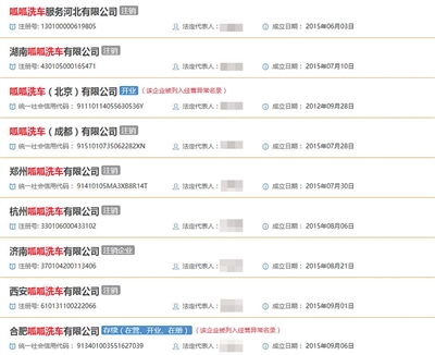 記者昨天查詢(xún)國(guó)家企業(yè)信用信息公示系統(tǒng),發(fā)現(xiàn)上述提及的各地分公司已大多數(shù)被注銷(xiāo),沒(méi)有顯示注銷(xiāo)的,也已被列入經(jīng)營(yíng)異常名錄。