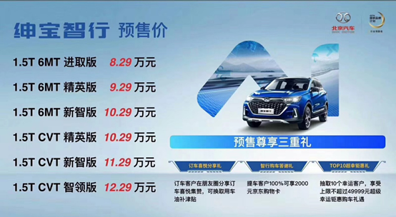 據(jù)悉,從8月31日成都車展開始,北京汽車已經(jīng)啟動(dòng)了紳寶智行預(yù)售活動(dòng),并推出訂車喜悅分享禮、智行購(gòu)車答謝禮、TOP10超幸鉅惠禮三重大禮,最高能省49999元。 (責(zé)任編輯:梁艷) |