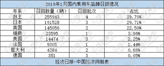 其中,1月,因“高田氣囊”事件,共有280105輛汽車被召回,占召回總量的43.45%;此外,以車系來看,自主品牌共召回汽車255943輛,占總量的39.70%,數(shù)量最多。