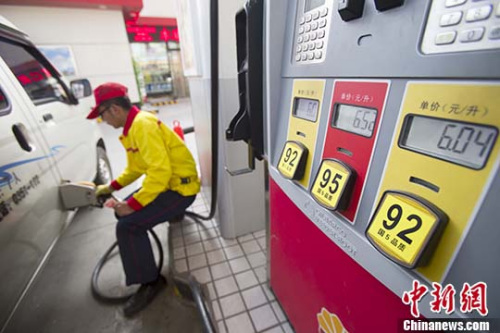 2016年11月2日,山西太原,加油站工作人員給車輛加油。中新社記者 張?jiān)?攝