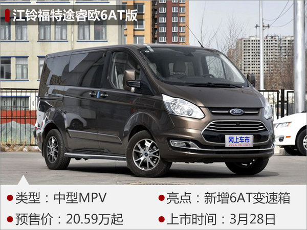 途睿歐是江鈴福特旗下一款MPV車型,目前全系均為手動擋車型,其自動檔車型將于3月28日上市。外觀方面,新車前臉使用了六邊形進(jìn)氣格柵,側(cè)面配有雙五輻式輪轂,下部則搭載了金屬踏板。車內(nèi)配有四輻式多功能方向盤、7英寸中控液晶顯示屏以及自動恒溫空調(diào)系統(tǒng)等舒適實(shí)用配置。此外新車還配備了博世ESP系統(tǒng)、HSA坡道輔助系統(tǒng)以及倒車影像等科技安全配置。途睿歐采用了福特2.0T EcoBoost渦輪增壓發(fā)動機(jī),最大功率為149kW,峰值扭矩達(dá)到了300Nm。