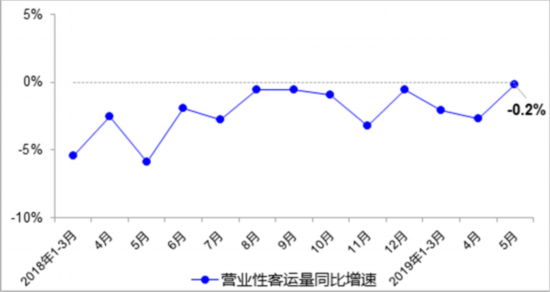 5月,完成營業(yè)性客運(yùn)量14.5億人,同比下降0.2%,降幅較4月收窄2.5個(gè)百分點(diǎn),其中公路營業(yè)性客運(yùn)量下降4.2%、水路客運(yùn)量增長1.6%。
