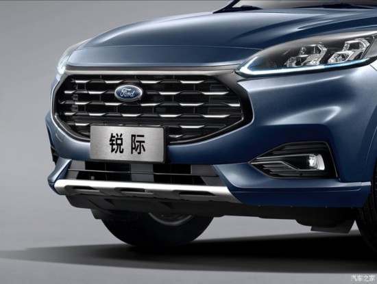 外觀來(lái)看,福特銳際整體基本延續(xù)了海外全新翼虎設(shè)計(jì),高配版車型還使用了針對(duì)中國(guó)市場(chǎng)專門(mén)設(shè)計(jì)的造型,采用了全新造型的六邊形前格柵,并在上方增加一根橫向鍍鉻飾條。同時(shí)福特車標(biāo)下移,嵌入到了格柵內(nèi)部。