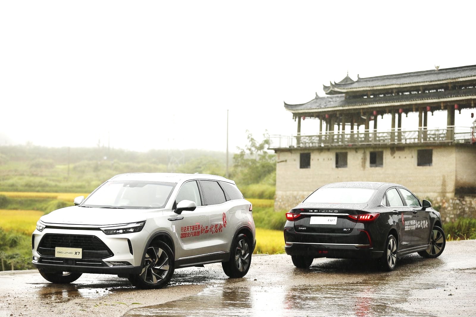 本次挑戰(zhàn)之旅連結(jié)貴陽(yáng)、丹寨、荔波三地,全長(zhǎng)226公里的路程,涵蓋了高速、國(guó)道、省道等復(fù)雜路況,對(duì)車輛性能提出全方位的考驗(yàn),BEIJING-X7和BEIJING-EU7成功經(jīng)受挑戰(zhàn),在駕駛途中不斷帶來(lái)驚喜。 穿行黔東南洞林湖景之間,BEIJING-X7和BEIJING-EU7的機(jī)械之美與自然風(fēng)光完美融合。BEIJING-X7采用大都致美設(shè)計(jì)語(yǔ)言,六邊形大氣格柵,配合銀河系全LED智慧光源系統(tǒng)打造出一張自信前臉,簡(jiǎn)約流暢的車身線條與身后的梯田曲線相互映襯,隱藏式智能感應(yīng)門把手點(diǎn)綴其中,不僅美觀精致,更能實(shí)現(xiàn)0.34超低風(fēng)阻系數(shù)。而BEIJING-EU7的雙C大燈獨(dú)具辨識(shí)度,逸美造型在山川映襯下更顯優(yōu)雅大氣。 兩款車型均具備領(lǐng)先同級(jí)的超大空間,BEIJING-X7的2800mm超長(zhǎng)軸距確保了寬適的乘坐空間,并擁有同級(jí)獨(dú)有的純平后排地臺(tái)、后排座椅180°純平放倒的King-size雙純平空間,透過(guò)它的Sky巨幕全景天窗,黔東南的山水洞石、吊腳鼓樓盡收眼底。