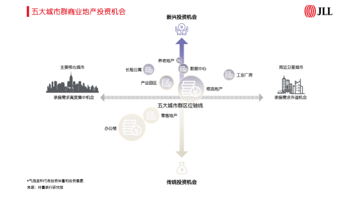 仲量聯(lián)行中國區(qū)研究部總監(jiān)姚耀表示:“五大城市群中的主要核心城市將在支撐傳統(tǒng)的辦公樓和零售地產(chǎn)市場的同時,催生產(chǎn)業(yè)園區(qū)、長租公寓等新興投資機(jī)會;周邊衛(wèi)星城則將承接需求外溢,物流地產(chǎn)將迎重大利好,工業(yè)廠房、數(shù)據(jù)中心等也將獲得投資者的關(guān)注。隨著各物業(yè)類型的需求進(jìn)一步演進(jìn),五大城市群將推動商業(yè)地產(chǎn)投資機(jī)會愈發(fā)多元化。”
