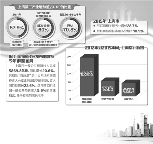 “營(yíng)改增方案出臺(tái)前,正在制定‘十二五’規(guī)劃的上海,遇到發(fā)展‘瓶頸’?!焙ū硎?,這在產(chǎn)業(yè)結(jié)構(gòu)上表現(xiàn)得尤為明顯。2011年,上海第三產(chǎn)業(yè)增加值占GDP的比重為57.9%,當(dāng)時(shí)北京接近80%?!皩?duì)上海來(lái)說(shuō),要想謀求強(qiáng)勁的可持續(xù)發(fā)展,必須優(yōu)化產(chǎn)業(yè)結(jié)構(gòu),發(fā)展現(xiàn)代服務(wù)業(yè)、提高第三產(chǎn)業(yè)的比重。恰在此時(shí),營(yíng)改增帶來(lái)了契機(jī)?!焙ㄕf(shuō)。
