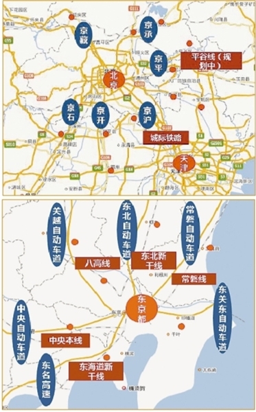 京津冀、東京都市圈高速、軌道交通對比