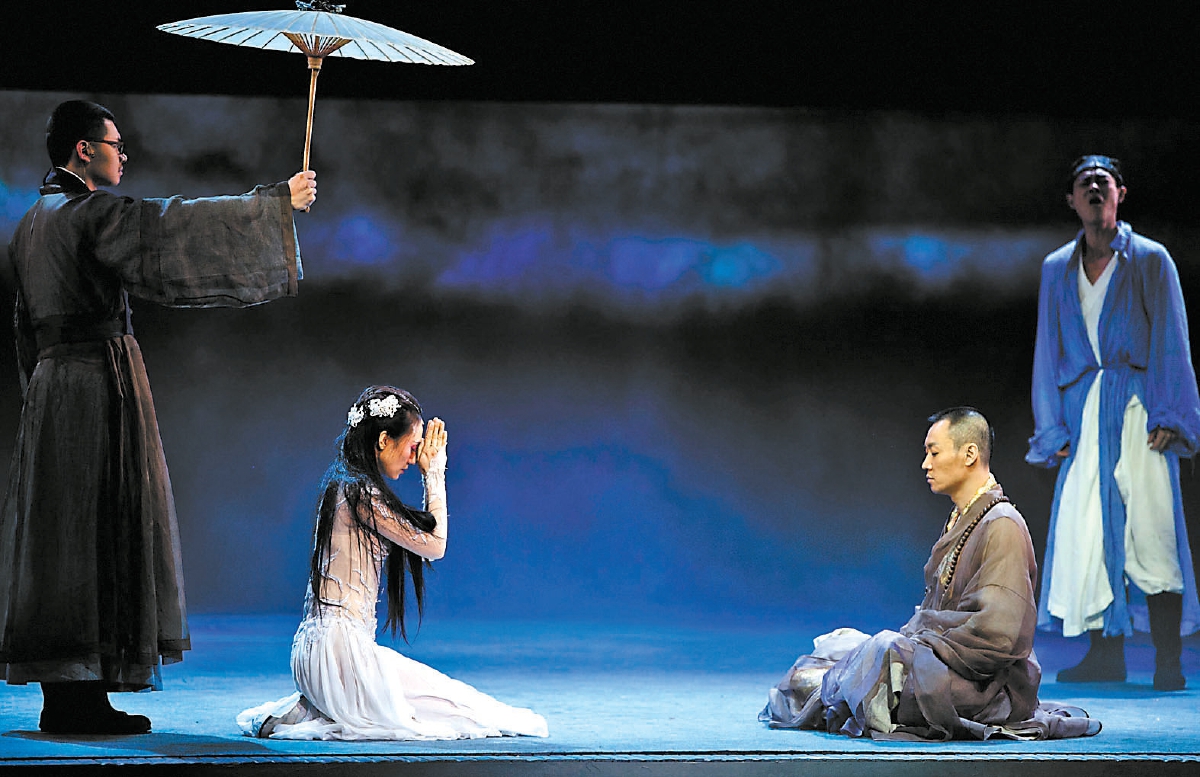 從古至今,各個(gè)時(shí)期的創(chuàng)作者根據(jù)當(dāng)時(shí)的社會(huì)環(huán)境、價(jià)值觀念、文化意識(shí)以及特定需要,在傳統(tǒng)民間傳說(shuō)的基礎(chǔ)上重構(gòu)各具特點(diǎn)的白蛇故事。近年來(lái),傳統(tǒng)文化題材成為文藝創(chuàng)作富礦,圍繞《白蛇傳》的改編也頗為豐富。除了前文中提到的多部舞劇作品,還有粵劇電影《白蛇傳·情》、動(dòng)畫電影《白蛇:緣起》《白蛇 2:青蛇劫起》等,均嘗試為這一古老故事賦予新的內(nèi)涵,但其中一些作品或無(wú)甚新意,或在觀念上開起倒車。