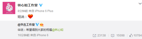 中新網(wǎng)5月20日電今日,霍建華工作室官方微博發(fā)布一條消息,稱“華說:希望得到大家的祝福?!辈亓肆中娜?。隨后,林心如工作室官方微博轉(zhuǎn)發(fā)微博,發(fā)表紅心默認(rèn)。