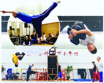 “夏季集訓(xùn)能夠明顯提高武戲的質(zhì)量,演員們都干勁十足?!倍F(tuán)團(tuán)長李笑陽對記者說,“此次與昆團(tuán)同場練功也是找差距、取長補(bǔ)短的好機(jī)會。”此番京昆合練,為的就是武戲中的經(jīng)典《雁蕩山》。沒有一句臺詞和唱腔的《雁蕩山》全憑演員過硬的武戲?qū)嵙Τ尸F(xiàn),從陸戰(zhàn)中的兵器對打、水戰(zhàn)里的“翻連環(huán)”“砸三險”“竄九毛”,到攻城里的跟頭組合,無不考驗功底。