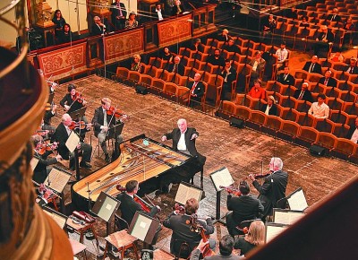 6月5日,維也納愛(ài)樂(lè)樂(lè)團(tuán)在維也納金色大廳舉行新冠肺炎疫情解封后的首場(chǎng)音樂(lè)會(huì)。根據(jù)防疫規(guī)定,現(xiàn)場(chǎng)觀眾人數(shù)被限定在100名。新華社發(fā)