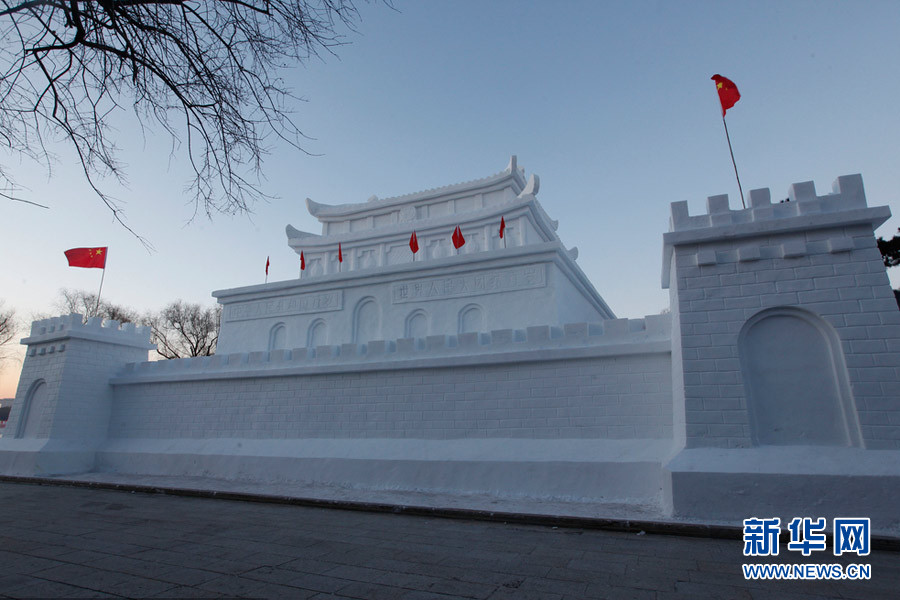 1月5日,長春,第三屆南湖公園雪雕展已全部完工,總造雪量一萬多立方米。共分為三個區(qū)域即迎賓區(qū)、歡樂區(qū)、復興區(qū)。