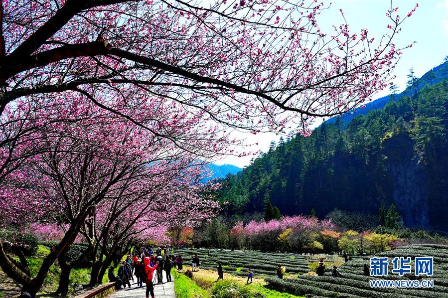 2月29日,游客在武陵農(nóng)場(chǎng)賞花。初春的臺(tái)灣,氣溫回升,位于海拔1700多米的臺(tái)中武陵農(nóng)場(chǎng),漫山遍野的櫻花競(jìng)相開(kāi)放,美不勝收,吸引了四面八方的游客前來(lái)觀(guān)賞。 新華社記者張國(guó)俊 攝